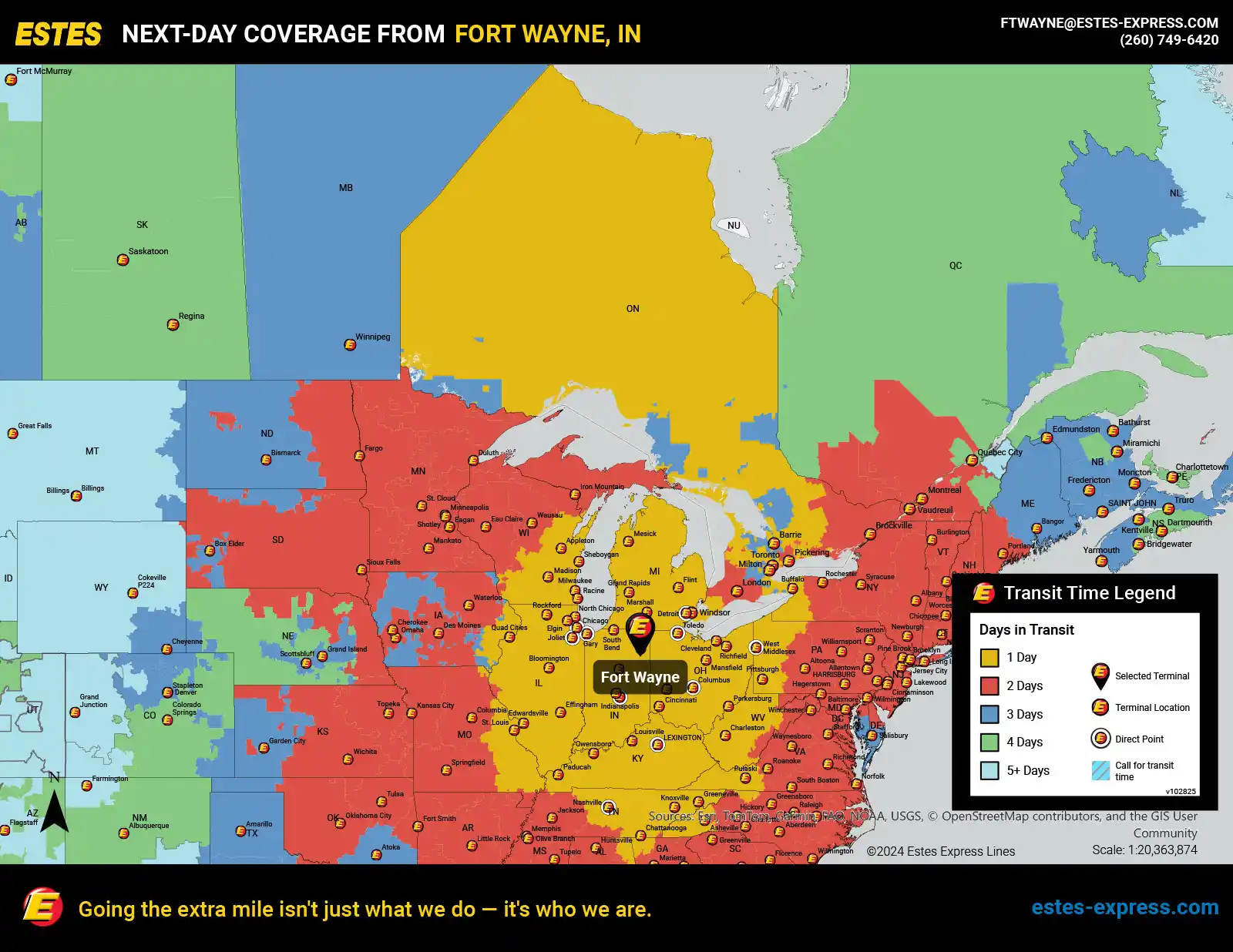 Thanks to our vast North American transportation network, Estes offers nearly 7,000 next-day lanes and 270 million next-day points to get your local shipments where they need to go, when they need to get there. And we offer competitive next-day transit pricing! Whether you need long-haul service, next-day delivery or anything in between—Estes does it all.