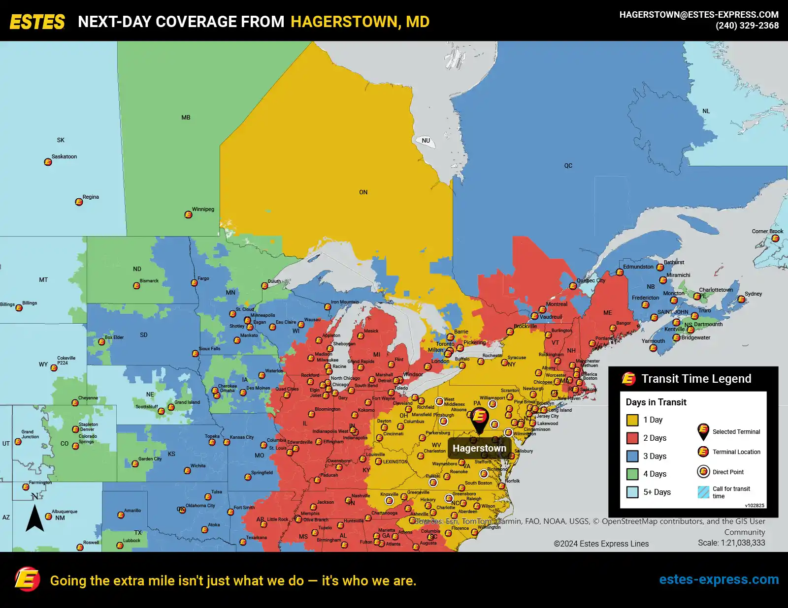 Estes also offers reliable next-day LTL shipping from the Hagerstown-Germantown-Frederick area to Toronto—supported by our nationwide team of Border Concierges and featuring some of the best freeze protection in the industry!