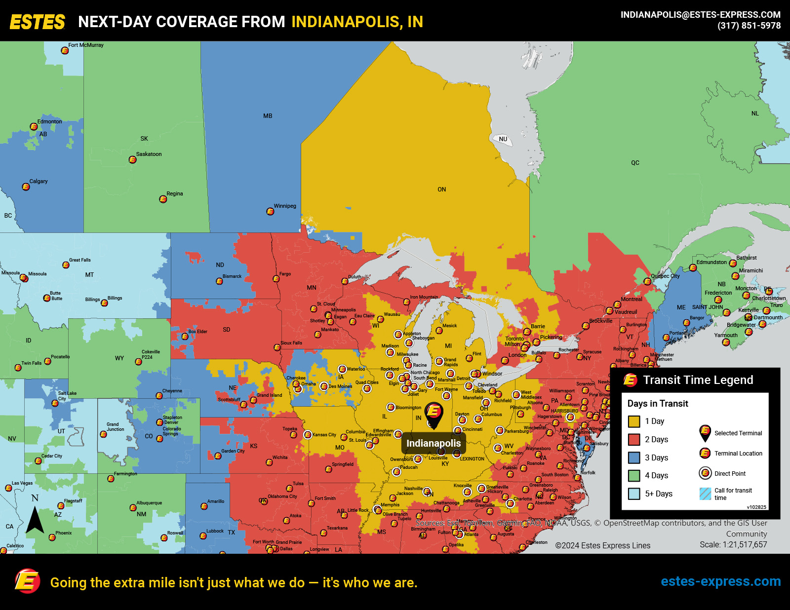 Whether you need to ship your freight across Indiana, the Midwest, the nation, or the border, Estes has you covered. And our advanced digital shipping tools and commitment to go the extra mile can help keep your business running smoothly.